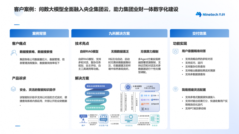 九科消息成为首批UAIP智能联盟,得益于其超卓的AI融合能力。早正在AI数字员工发布前,九科消息便已打制出成熟的AI+RPA产物。自2020年成立至今,九科消息已为数百家国央企,正在财政、采购、物流等范畴,打制企业级RPA+AI使用。此中,借帮先辈的狂言语模子,九科消息为招商局集团打制定制化AI使用功能,笼盖多个财政场景。除了智能填单、智能审单等根本功能外,九科消息更为集团打制出财政数字人兼顾智能体,为用户供给便利的数据查询和阐发办事,帮帮用户更高效地解读财政数据,发觉趋向和非常,并辅帮决策。